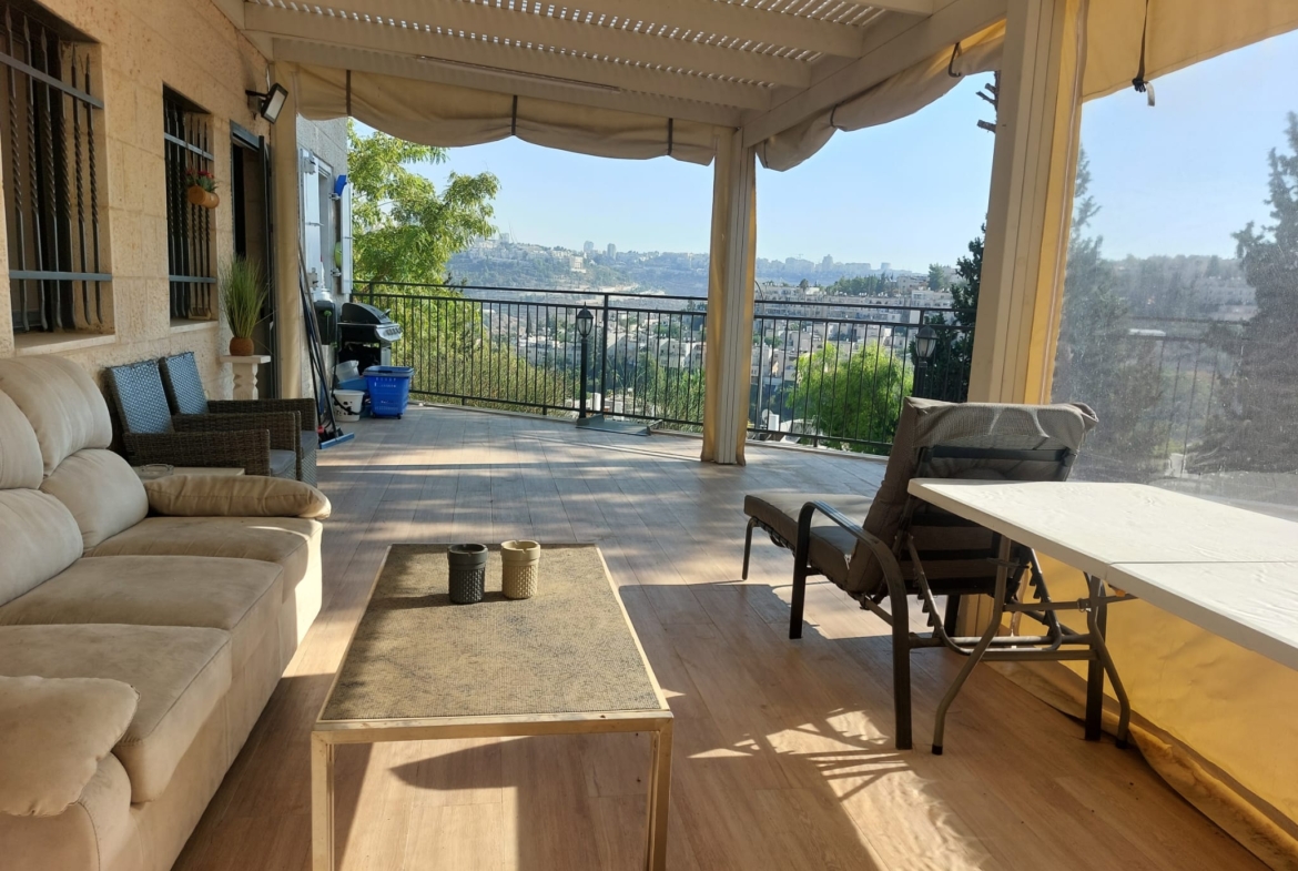 ברחוב הנרי מורגנטאו הירוק והיוקרתי. דירת 4 חד’ עם גינה 55מ”ר לנוף ירושלמי. שופצה לפני כשנתיים כולל הכול! יח’ הורים ענקית ! ממ”ד. מרפסת 14מ”ר לנוף (כרגע מקורה, אפשר לפתוח) כניסה פרטית! גישה רק 18מדרגות! גינה מטופחת מהסלון שפונה לנוף , עם פרטיות . לגור בעיר ולהרגיש בכפר!